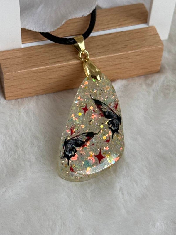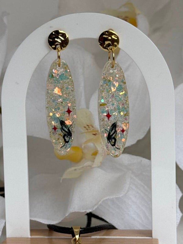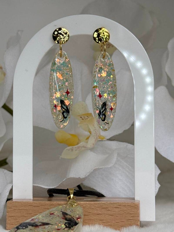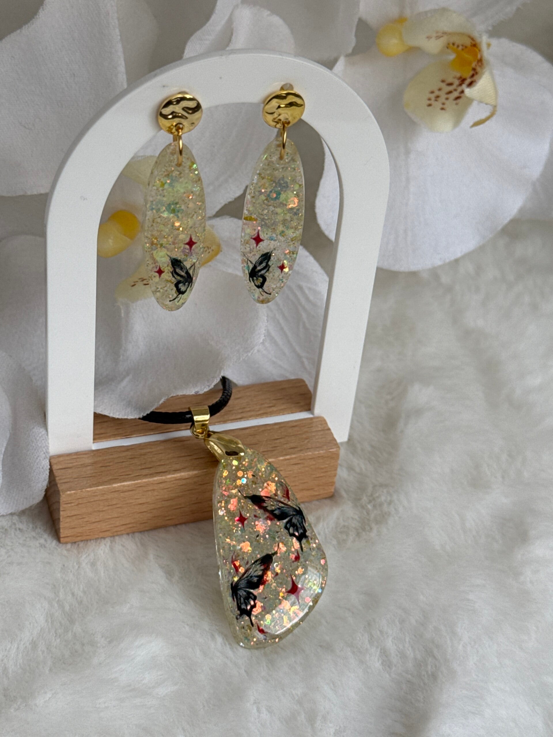 Parure citronnade papillons noirs et étoiles rouges
