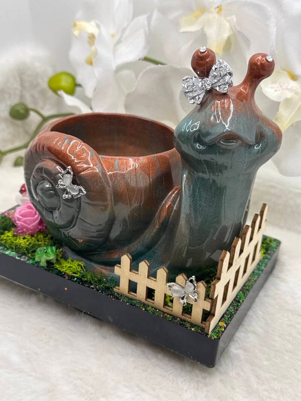 SUPERBE Escargot ( vide poche , pot... ) que son socle pailleté champêtre.