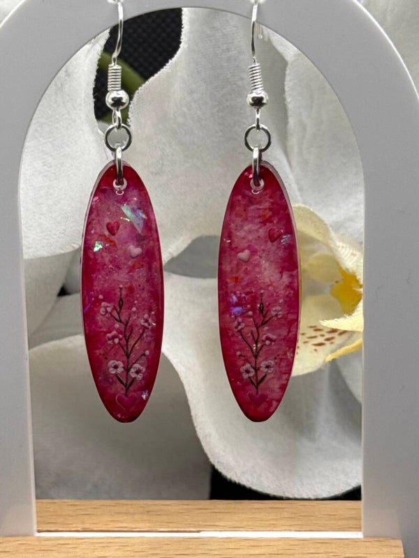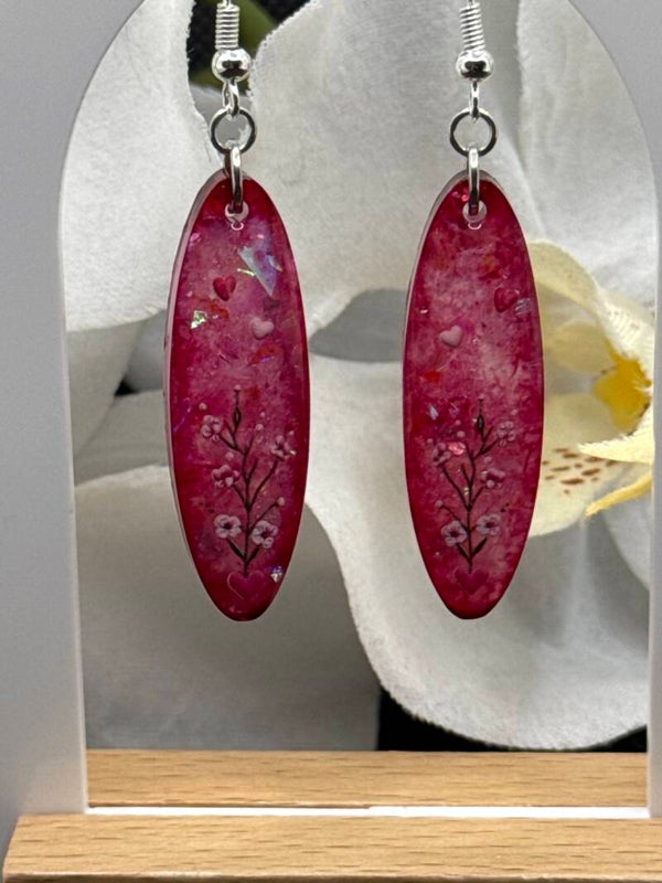 Couleur rose foncée fumée pailletées holographique elles sont décorées de branches fleuries roses ( branches de cerisier ) cœur bi-couleurs