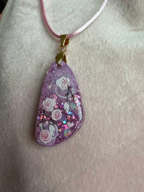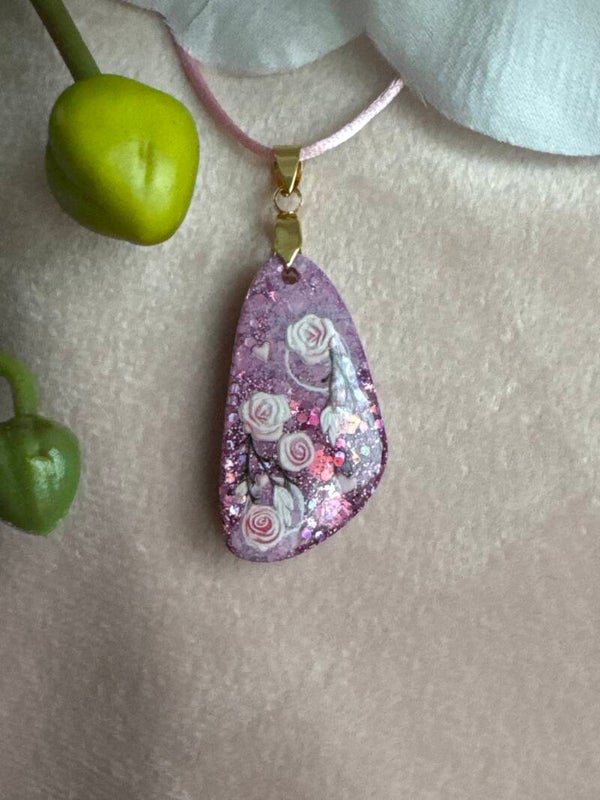 Couleur rose full pailleté avec de magnifiques reflet ultra brillant, léger fumé blanc. Il est décoré de ses roses assorties .