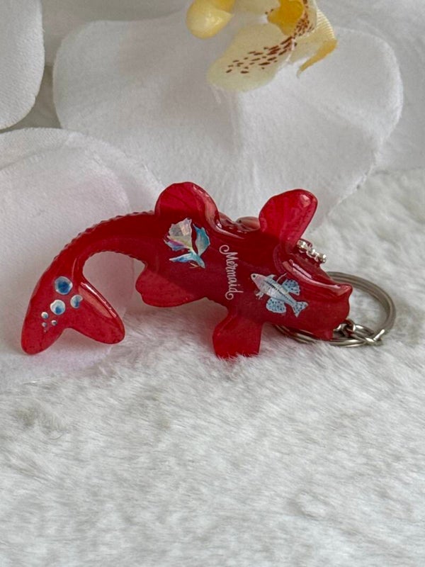 Porte clé carpe koi rouge pailletée et ses coquillages 9