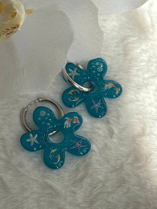 Thème océan, elles sont bleu pailleté décorées de poissons étoiles de mer...