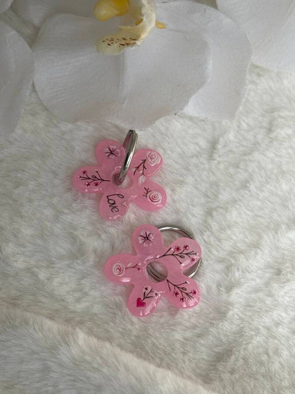 Couleur rose claire , elles sont décorées de roses et fleurs assorties, inscription Love