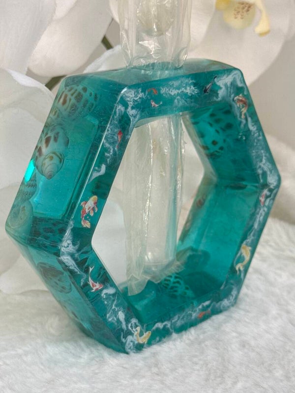 Theme océan il est incrusté de véritables coquillages et décoré de ses poissons qui nagent dans l'écume