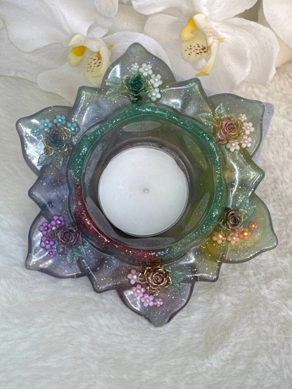 Superbe bougeoir lotus multicolore