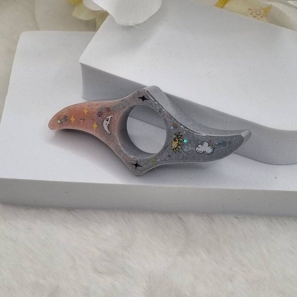 Couleurs grise et rose poudrée elle est décorée de lune er soleil