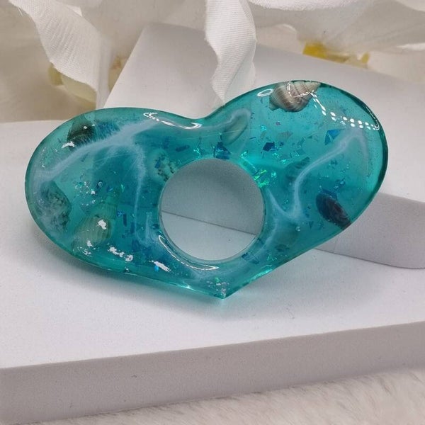 Couleur bleu océan incrustée de paillettes holographique et coquillages er son effet écume