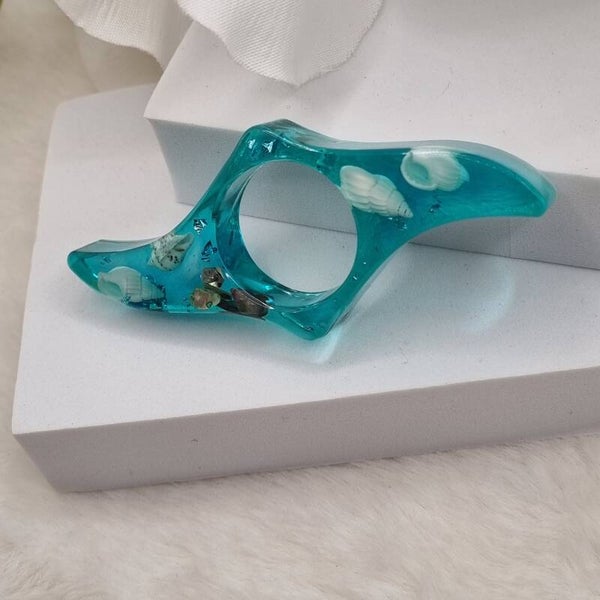Couleur océan elle est incrustée de véritables coquillages, feuilles métal turquoise et nacre er spn effet écume