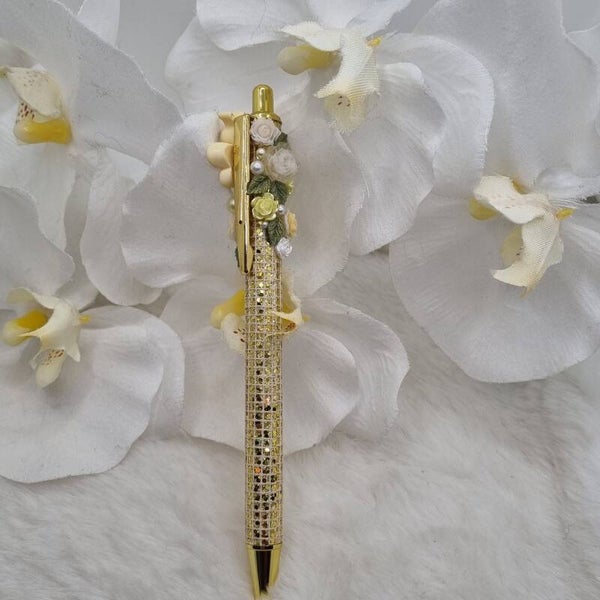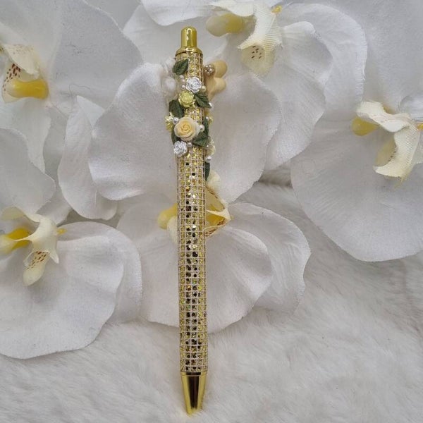 Stylo full paillettes jaune doré
