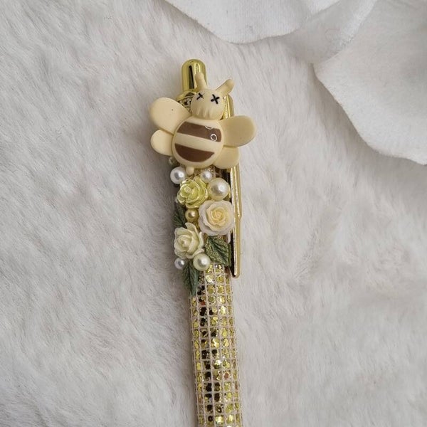 Il est décoré de roses et perles assorties, feuilles vertes dorées , et de sa magnifique abeille kawai
