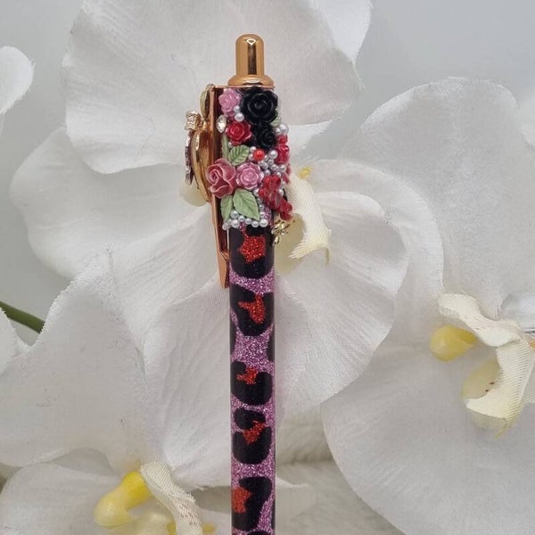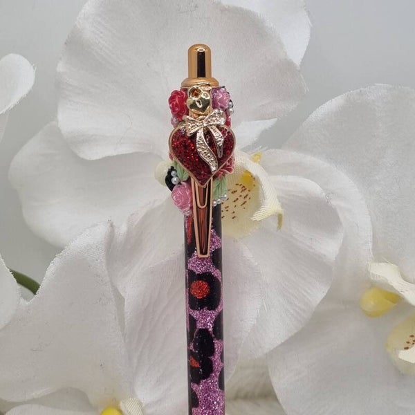Il est décoré d'un magnifique bijou cœur rouge pailleté, roses assorties, perles , Strass, petit cadena, d'un love....