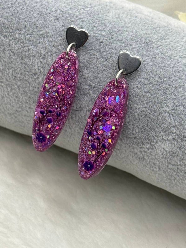 Couleur pailletée rose elles sont décorées de fleurs violettes