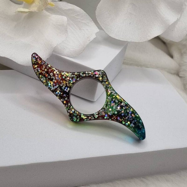 Couleur dégradé du vert au rouge , paillettes , elle est décorée de papillons pailletés dorés