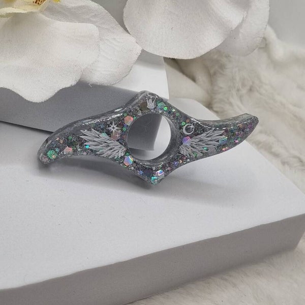 Full paillettes argent holographique elle est décorée d'ailes d'anges blanches