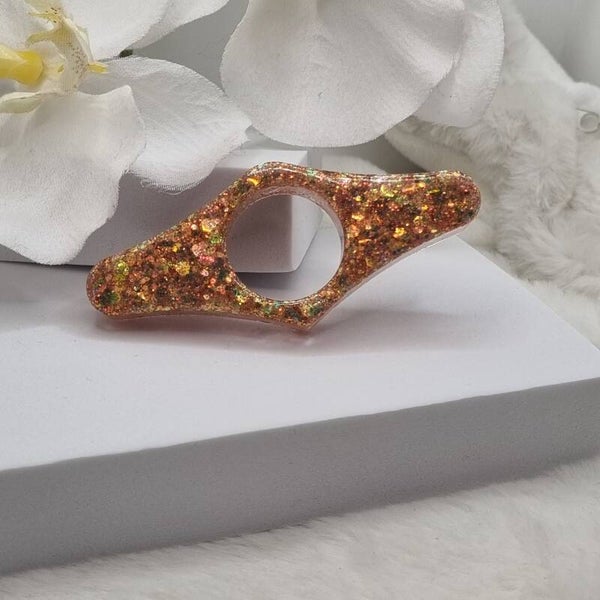 Couleur saumon full paillettes elle est décorée de fleurs blanches et papillons bleus