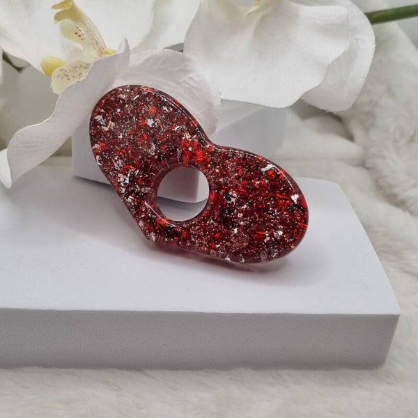 Incrustée de feuilles métal rouge et argent elle est décorée de cartes à jouer