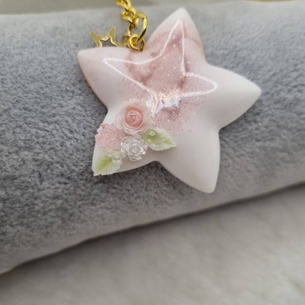 Couleurs blanche et rose poudrée pailletée elle est décorée de roses assorties, bulles, et de petits ours et fleurs blanches